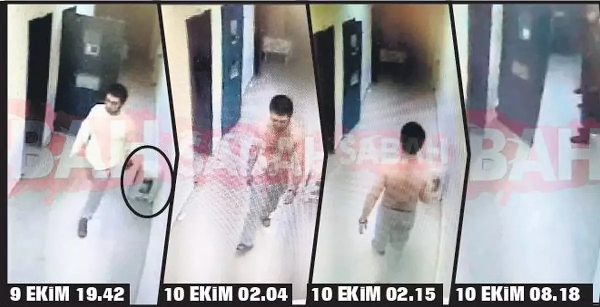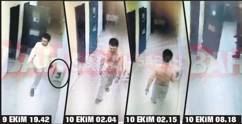 Kamera görüntülerine göre, 9 Ekim’i 10 Ekim’e bağlayan gece Garipoğlu, saat 03.09’da 3’üncü bölmenin kapısını tamamen kapattı. Yaklaşık 4 dakika sonra ise koridorda bulunan bir tabureyi aldı.